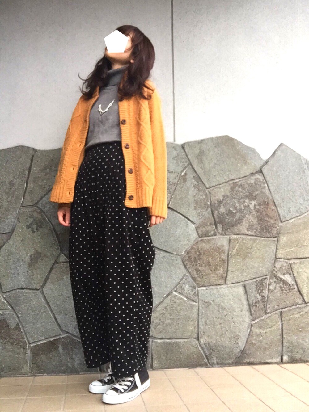 いつひかのドットパンツ👖💕 マスタードの厚めのカーディガンは昔の。