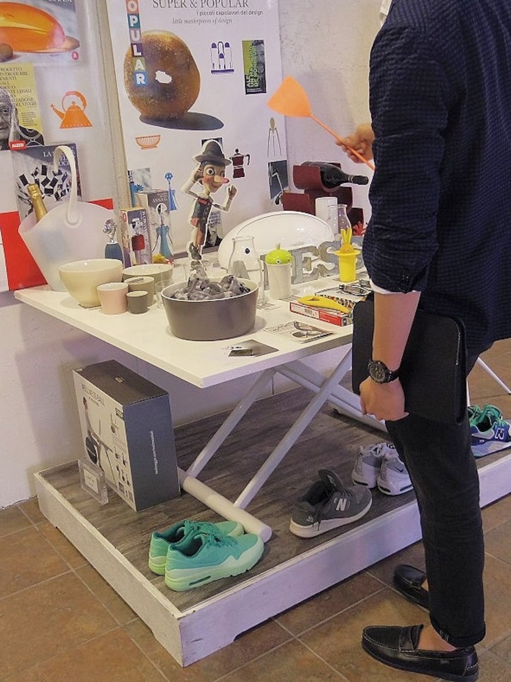 本日のコーデは全体的に色をダークネイビーで統一☆ 中間にわかりやすい白シャツで差し込み♪ 札幌は夏にしてはまだまだ涼し気で一日を通すとジャケシャツにクロップドパンツで肌を出さないくらいでもちょうど良いですね。 サンローランのクラッチを片手にふらっと、当店取り扱いのイタリアハウスウェアメーカー“アレッシィ”を物色中~ 面白いデザインばかりでつい見入ってしまいます(^^)