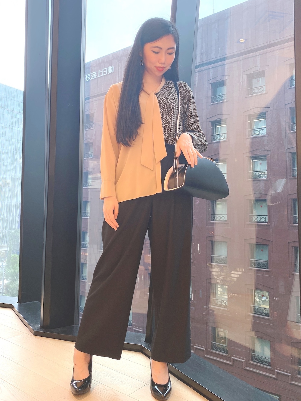 manamiのシャツ/ブラウス「RAW FUDGE ローファッジ デシン柄切替タイ付きシャツ」を使ったコーディネート