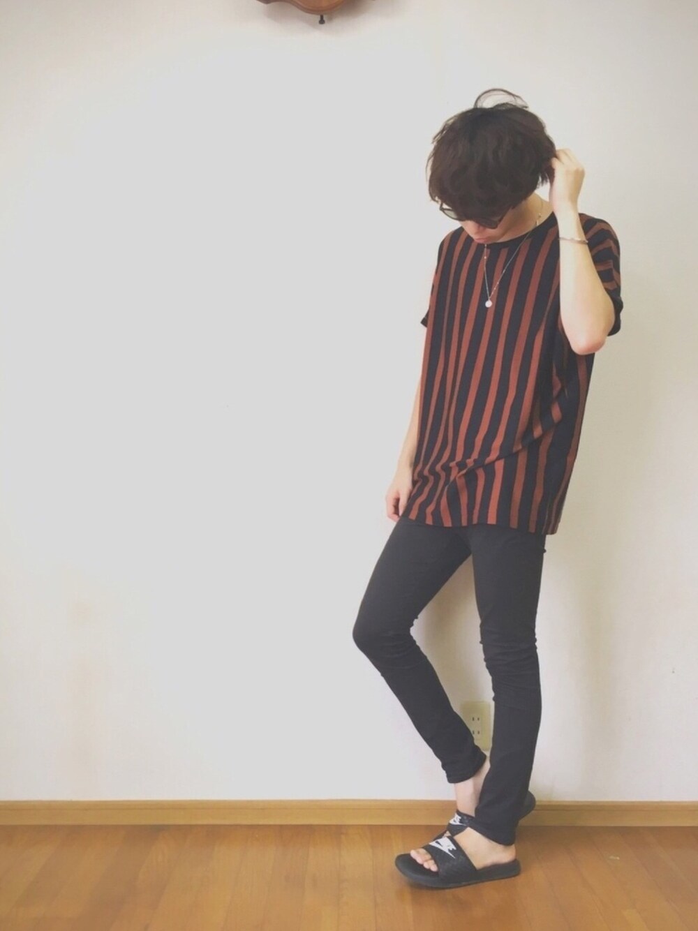 こーのTシャツ/カットソー「BLOCKS STRIPE DOLMAN S/S BIG-T 」を使ったコーディネート