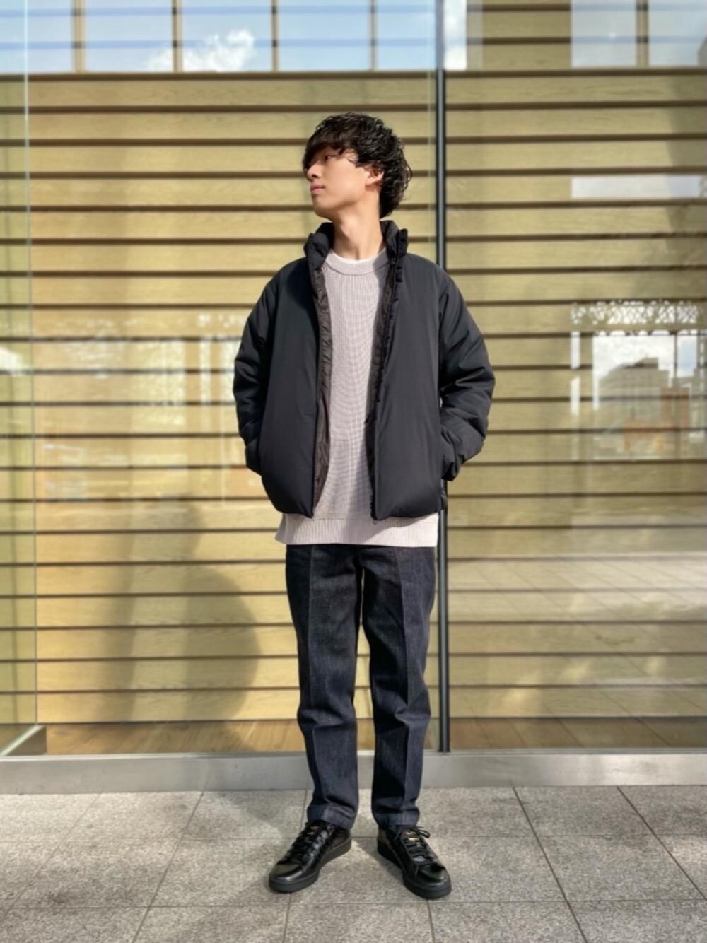 撥水加工があり機能的で、スタンドカラーでファッション性もある万能ダウンジャケットです! ダウン自体も軽量で疲れにくく、ややゆとりのあるシルエットでニット合わせをしても着膨れしにくく冬のオシャレを楽しめます。 今回はニットと合わせ、一足早く本格的な冬のスタイリングにしてみました!