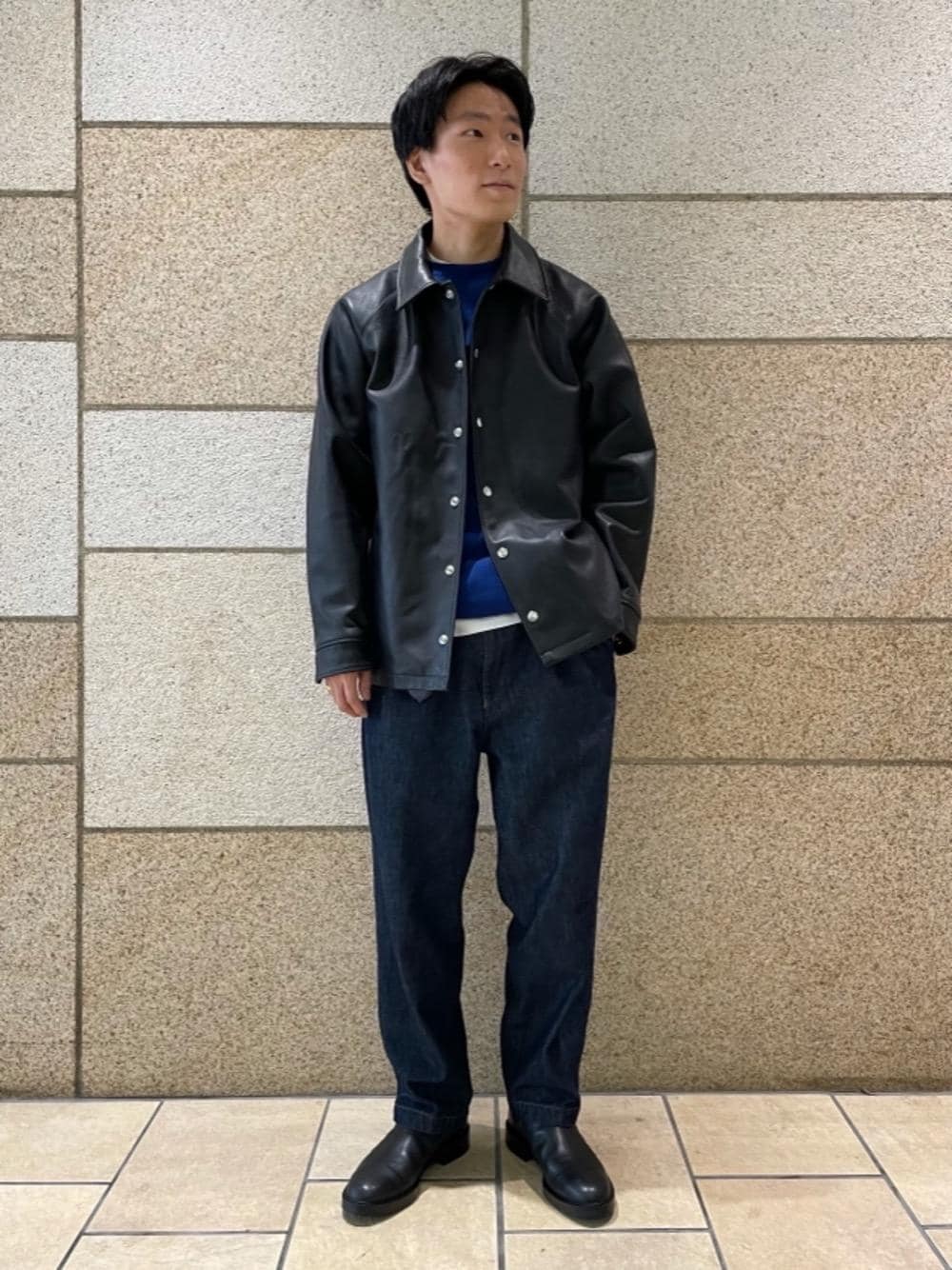 【身長】 172cm 【普段のサイズ】 トップス M パンツ M シューズ 26cm 【サイズ感】 アウター:ゆったり ニット :ゆったり パンツ :ゆったり 【素材感】 アウター:しっかりとしたレザー素材 ニット :しっとりとした柔らかい生地感でとても快適 パンツ :コットン地でオールシーズン着やすい 【着心地】 レザーコーチはゆったりとしたシルエットでありながらフラットなきれいめな印象に身幅もあるのでインナーもいろいろ合わせやすく冬でも大活躍です!
