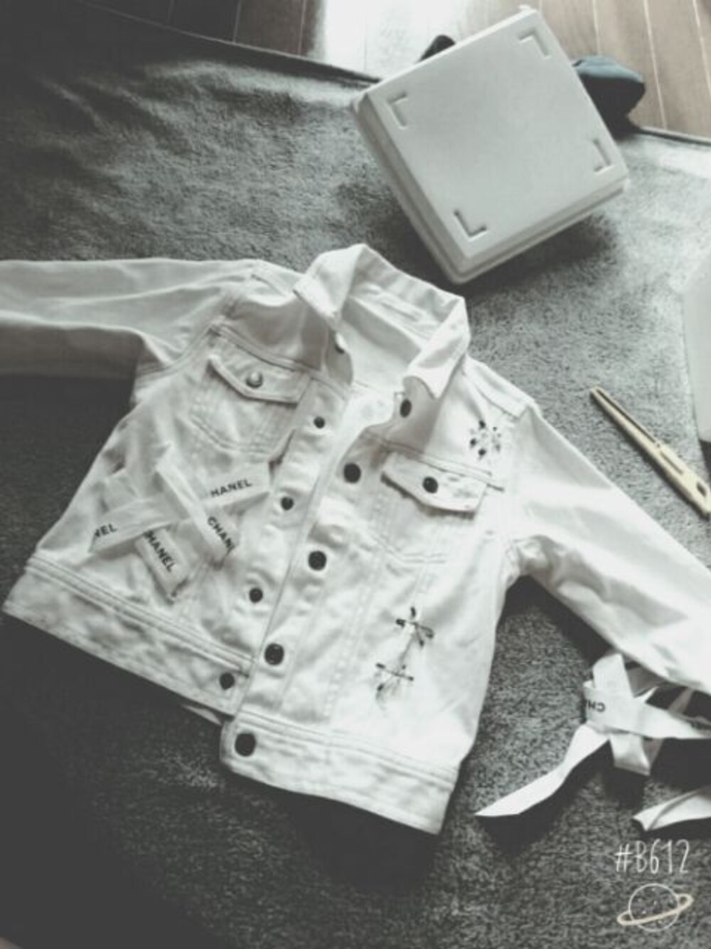 漂白剤で、破れたのねっ。。 でも、ちょいっと直し❤ CHANELの紐と100均のピンで、 アレンジ🙌🙌🙌可愛い😝💕
