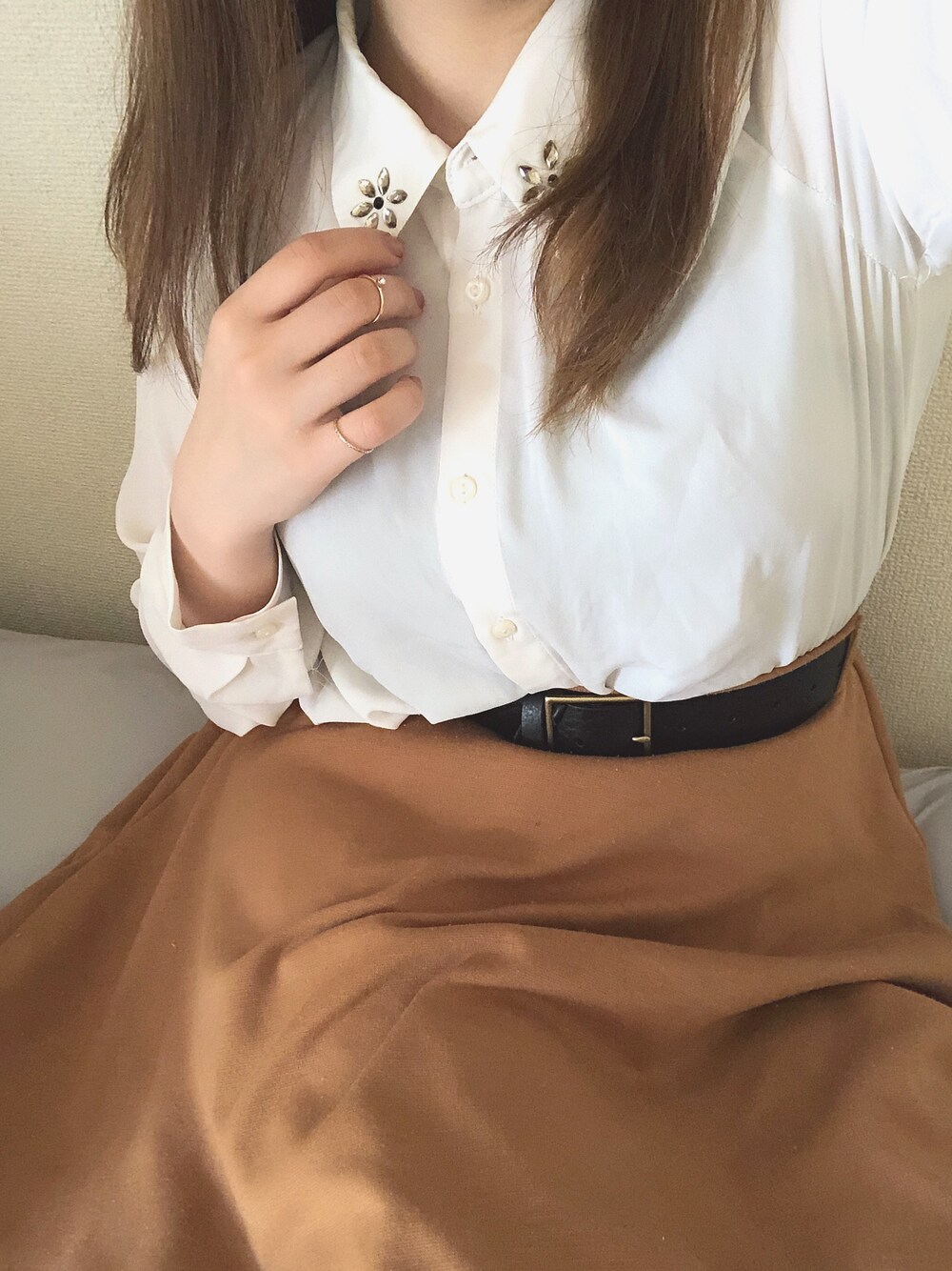 こんにちは! 今日は証明写真撮影に行くために学校の先生みたいなコーデにしてみました笑 キレイめな女子大生とかにもいそうですよね笑 襟のビジューが可愛くてお気に入りです🧡 見ていただきありがとうございます! よければコメントもお待ちしてます😶