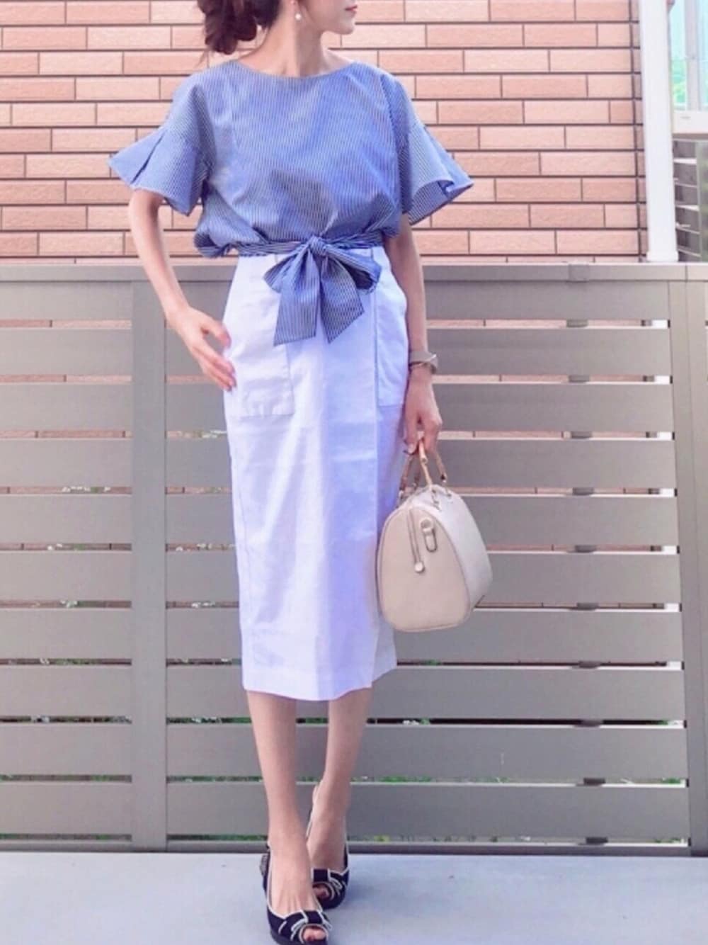 AZUL ENCANTOさんの2wayストライプリボンブラウス✨ 再入荷しています☺️ 今回はSサイズ着用しています。 スカートで合わせてみましたが パンツでもスカートでもどちらでも 可愛く合わせられて お手入れも簡単✨ ほんと優秀アイテムです。