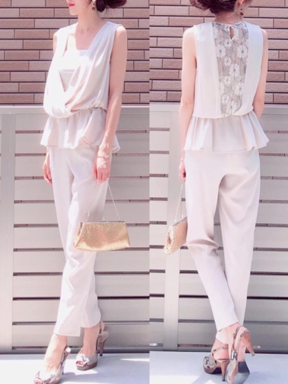hononのドレス「バックレースVネックセットアップパンツドレス【結婚式・お呼ばれ・オケージョン・フォーマル対応パンツドレス】」を使ったコーディネート