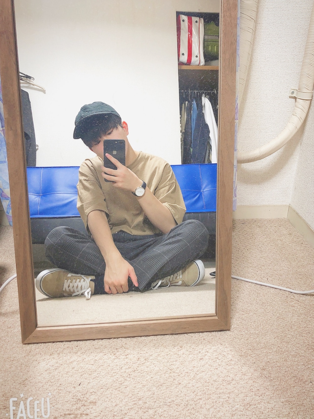 ベージュコーデ🍁 ベージュのTシャツ×チェックパンツ フォローよろしくお願いします!