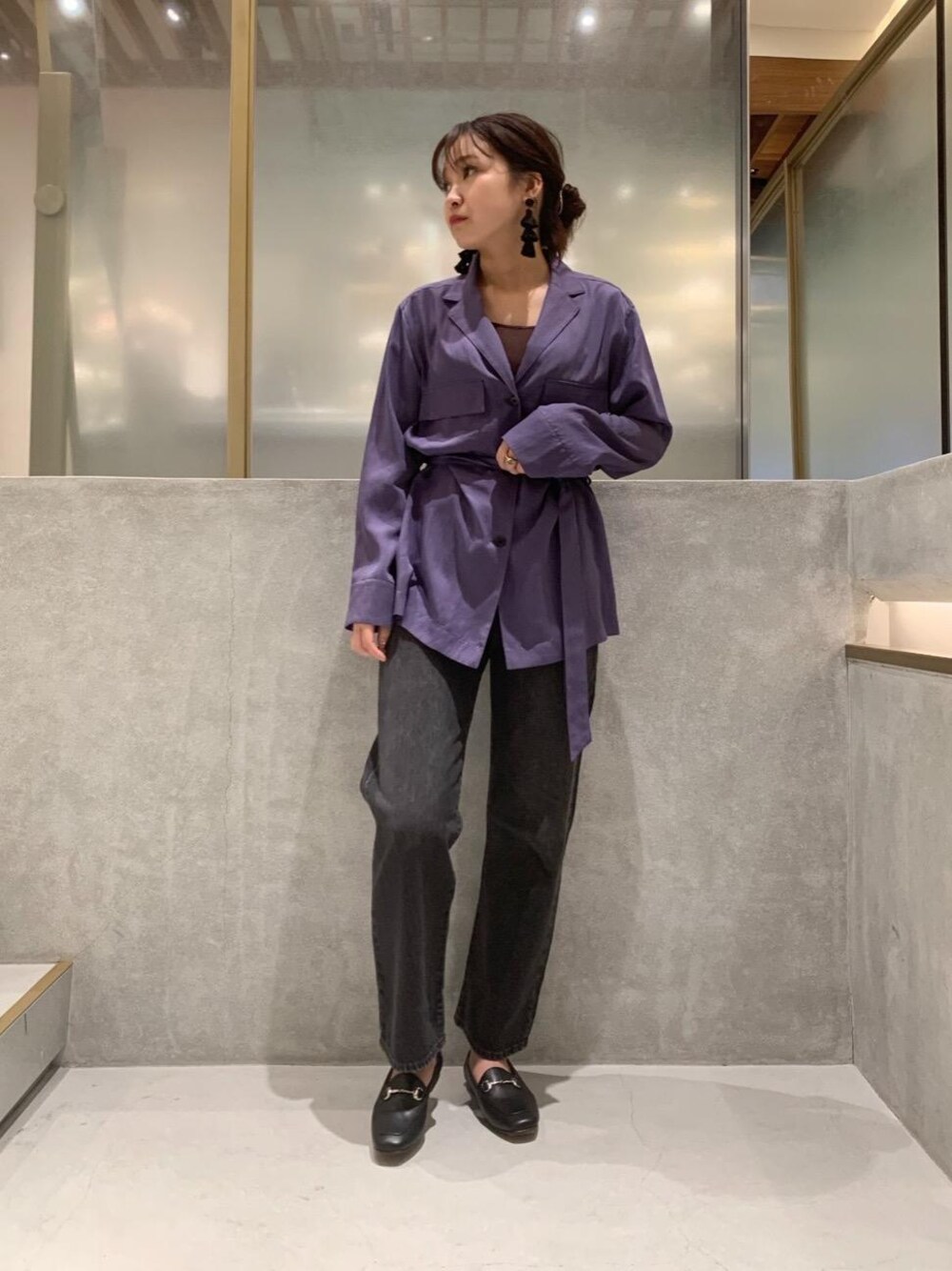 シャツジャケットをシンプルに着て、全体的にシックにまとめました。