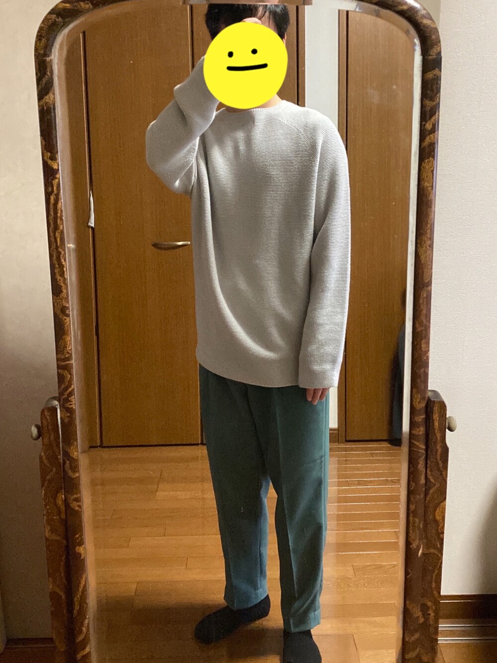 "優しそう""落ち着く"は社交辞令ですか? UNIQLOUの3Dクルーネックセーター気に入ってます。パンツは何でも合うと思います。最近は明るいブルーのデニムと合わせています。