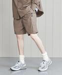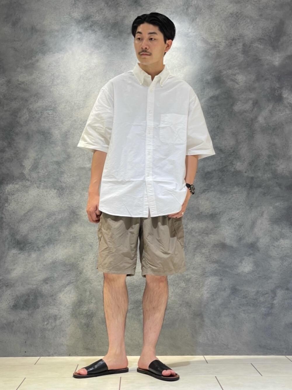【身長】180cm(標準体型) 【普段サイズ】L/XL シューズ27.5/28.0cm 【サイズ感】 トップス:全体的に大きめのサイズ感ですが、丈感は程よくスッキリめなお作りとなってます。 ボトムス:裾口が広めに作られているので、足の太さを気にせず履いていただけます。 シューズ:標準的です。 【素材感/着心地】 トップス:張り感のある生地ですが、これからの季節も使いやすい軽めな質感となっており、羽織りとして一枚持っておくのも便利です。 ボトムス:ナイロン100%の軽い質感で、ゆとりのあるサイズ感です。肌離れが良く、空気も含みやすいので、これからの時期は重宝すると思います。 【コーディネートポイント】 シャツとハーフパンツを合わせたきれいめカジュアルコーディネートです。少し上品な印象になるように、足元はブラックのサンダルを合わせました。