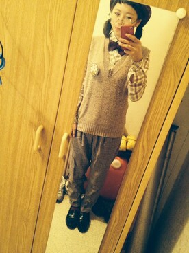 「古着のアイテム(ニット/セーター、ブラウン系)」を使った、ポールさんの秋コーディネート