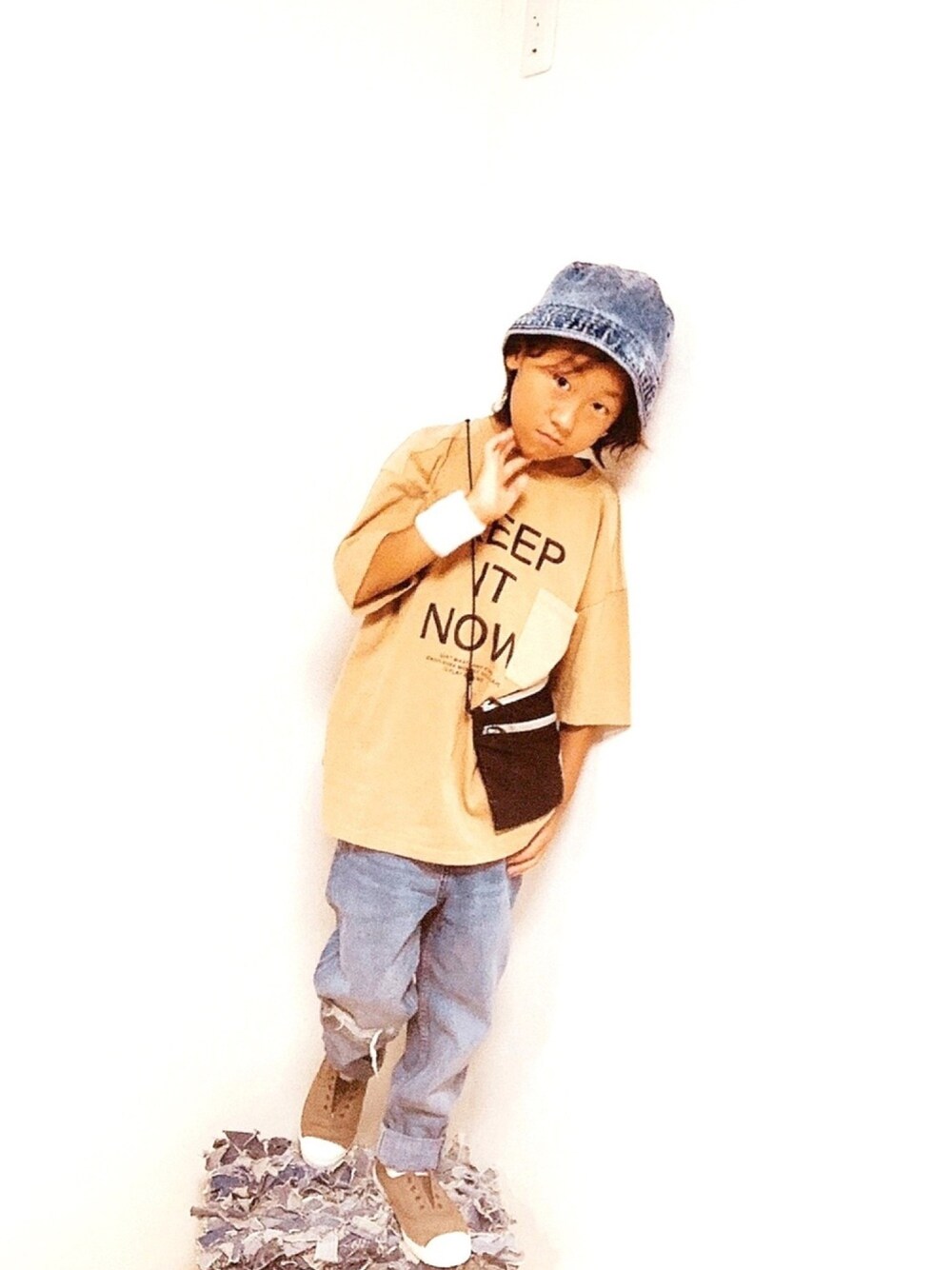 見ていただきありがとうございます❤️ ♡+フォルダINにフォローも全て感謝です🙌💕 コタです😎 ベージュ🧡 シンプルコーデ✨ このバケハほんとよくかぶってる💙 カメラ映らぬので、INカメラで撮影😂