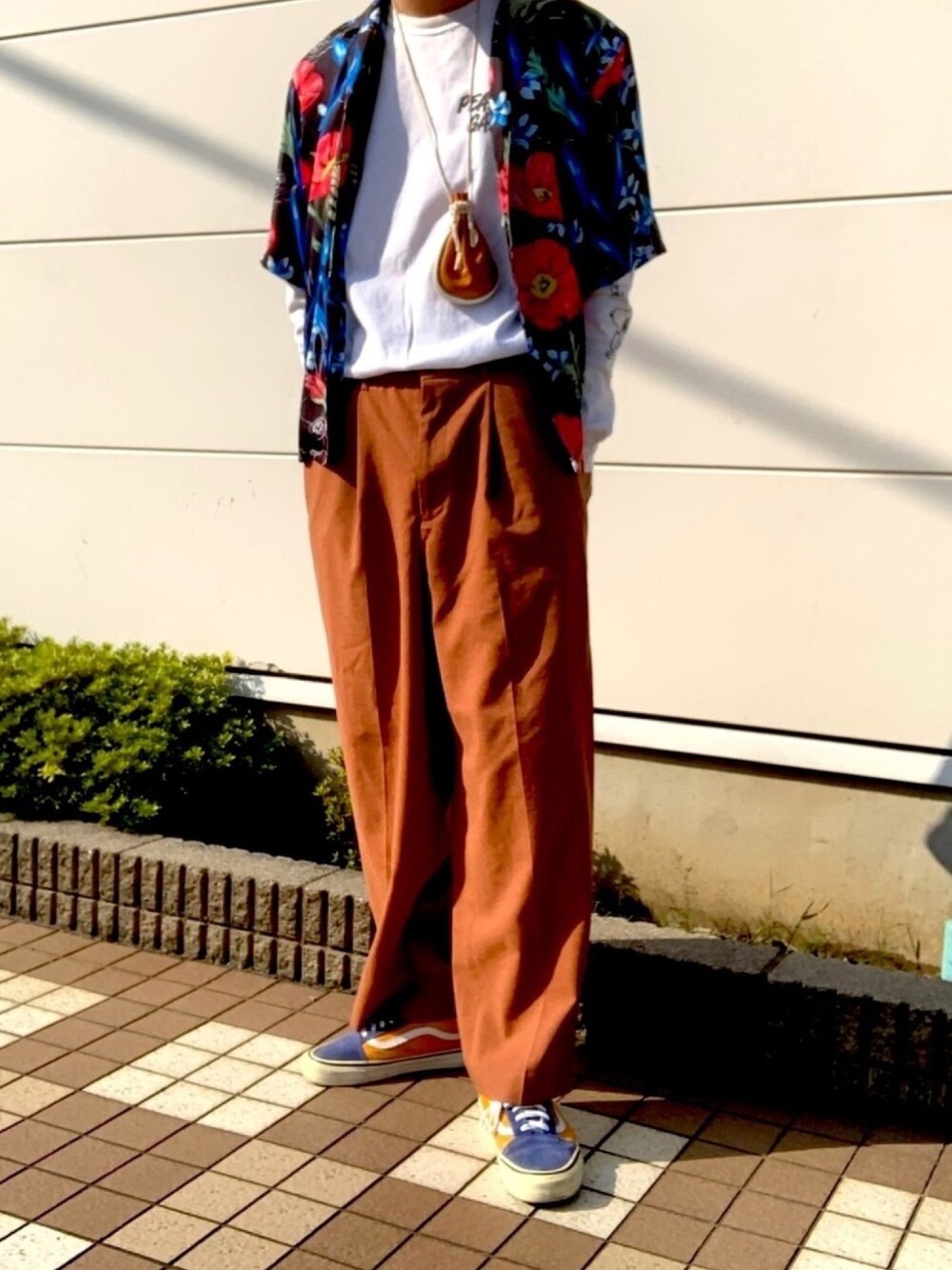 ご覧いただきありがとうございます! 今回はロンTに柄シャツを羽織り秋口に活用しやすいコーデを組んでみました。 ・ポイント1→秋らしくテラコッタ色の緩いスラックスで柄シャツとのバランスを取りました。 ・ポイント2→ロンTの上に半袖シャツを羽織ることで夏物のアイテムを活用しつつこれからの季節に対応できるようにしました。 ロンT×半袖シャツは夏物と秋物のミックスとなり、更に袖プリントがあるロンTなどの場合見栄えも非常に良いためこれからの季節に非常にオススメです。 良いと思った方は是非いいね、フォローの方していただけると嬉しいです😊