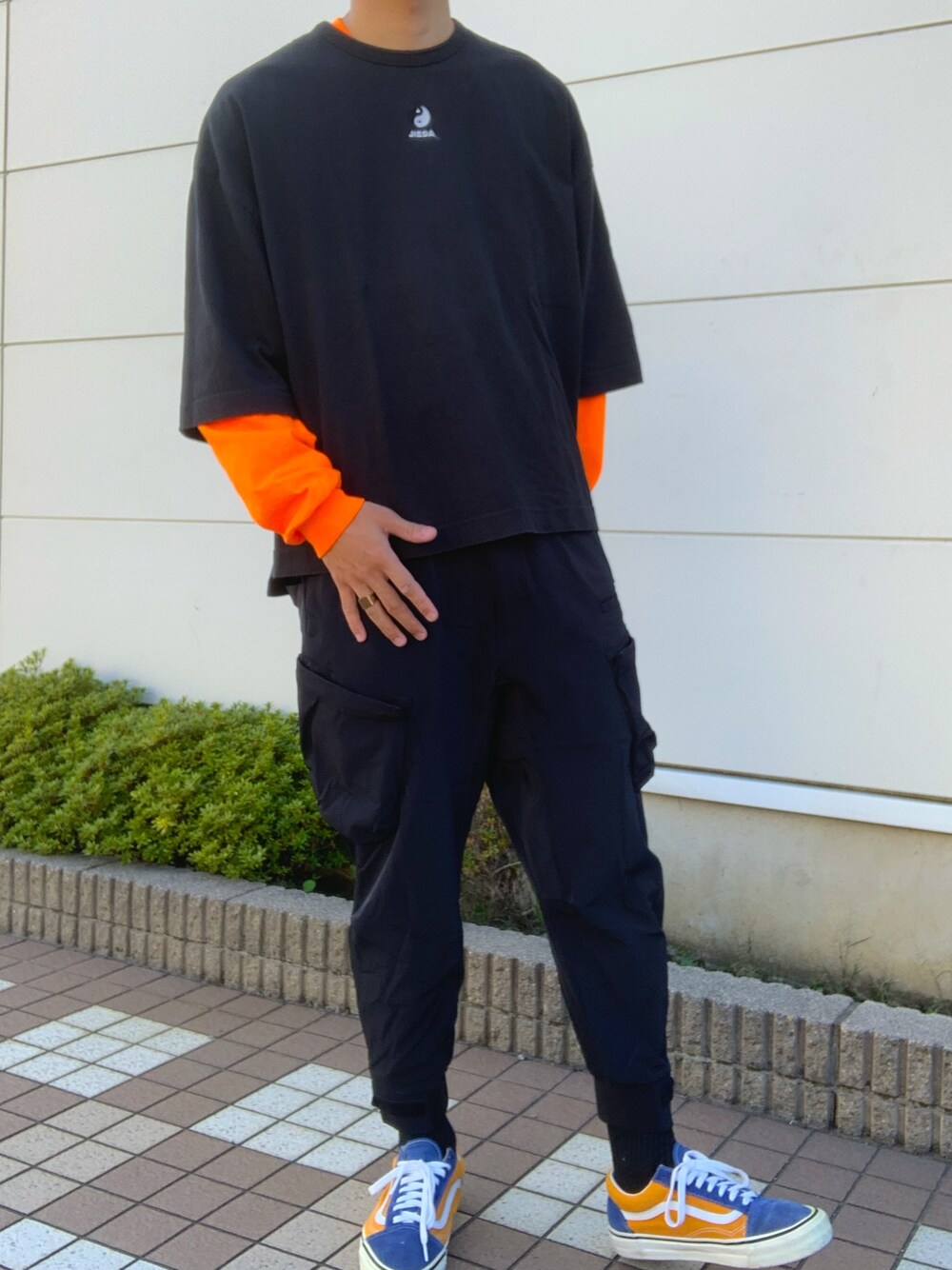 ご覧頂きありがとうございます! 今回は今開催されている"やっぱりストリートが好き”にちなんでストリート系のコーデを組んでみました! ・ポイント1→テーパードが強めにかかった機能性パンツを着用することでストリート感を強めました! ・ポイント2→アクセントカラーとしてオレンジを入れることでインパクトのあるコーデにしました! 今回あまり着ないストリート系コーデを組んでみましたがやはり、いつもと雰囲気の違うコーデを組むとそれぞれの良さが分かるのでファッション全体に対する見解が広がりますね!他の系統のコーデもしてみたいので今後チェックしていただけたら嬉しいです。 今回のコーデが良いと思った方はいいね、フォローして頂けたら嬉しいです😊