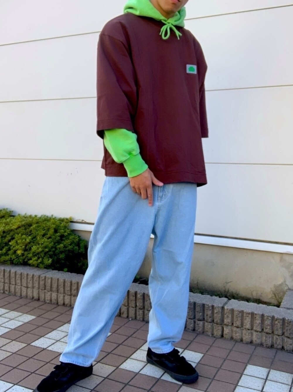 ご覧いただきありがとうございます! こんかいはパーカー×オーバーサイズTでコーデを組みました! ・ポイント1→アクセントカラーをTシャツの黄緑に合わせパーカーも黄緑にしました! ・ポイント2→ライトブルーのデニムにすることでストリート感を強めにしました! 今回のようにオーバーサイズTにパーカーを合わせるのはお手軽ながらも着こなしている感を出せるのでぜひやってみてください!とてもオススメです!パーカーのフードが立つ型だと尚良しです! 今回のコーデが良いと思った方はいいね、フォローしていただけると嬉しいです😊