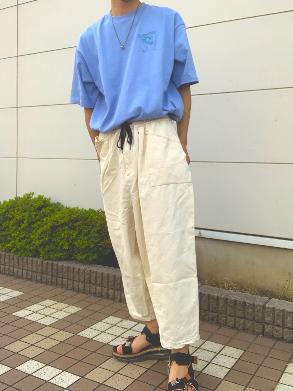 ご覧頂きありがとうございます。 本日も真夏日で暑いので夏らしいパステルカラーのTシャツに白のパンツを合わせました! tシャツは生地が薄過ぎず厚過ぎない為、今日の様な厚い日は一枚での着用もでき、シャツなどを羽織りたいときには羽織っても涼しく過ごせる1着です! パンツはとても太めのシルエットながらもテーパードが軽くかかっている為全体の雰囲気をまとめてくれる一本です。 よろしければ、いいね、フォローの方よろしくお願いします!