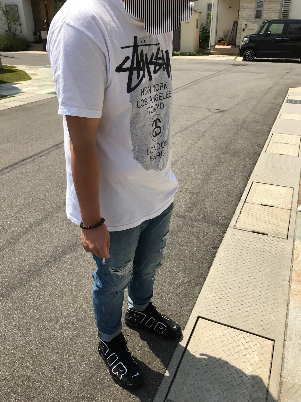 Nike Air More Uptempo をGetした記念に一枚😎📷先日購入したダメージデニムとの組み合わせがたまらんです🤣✨