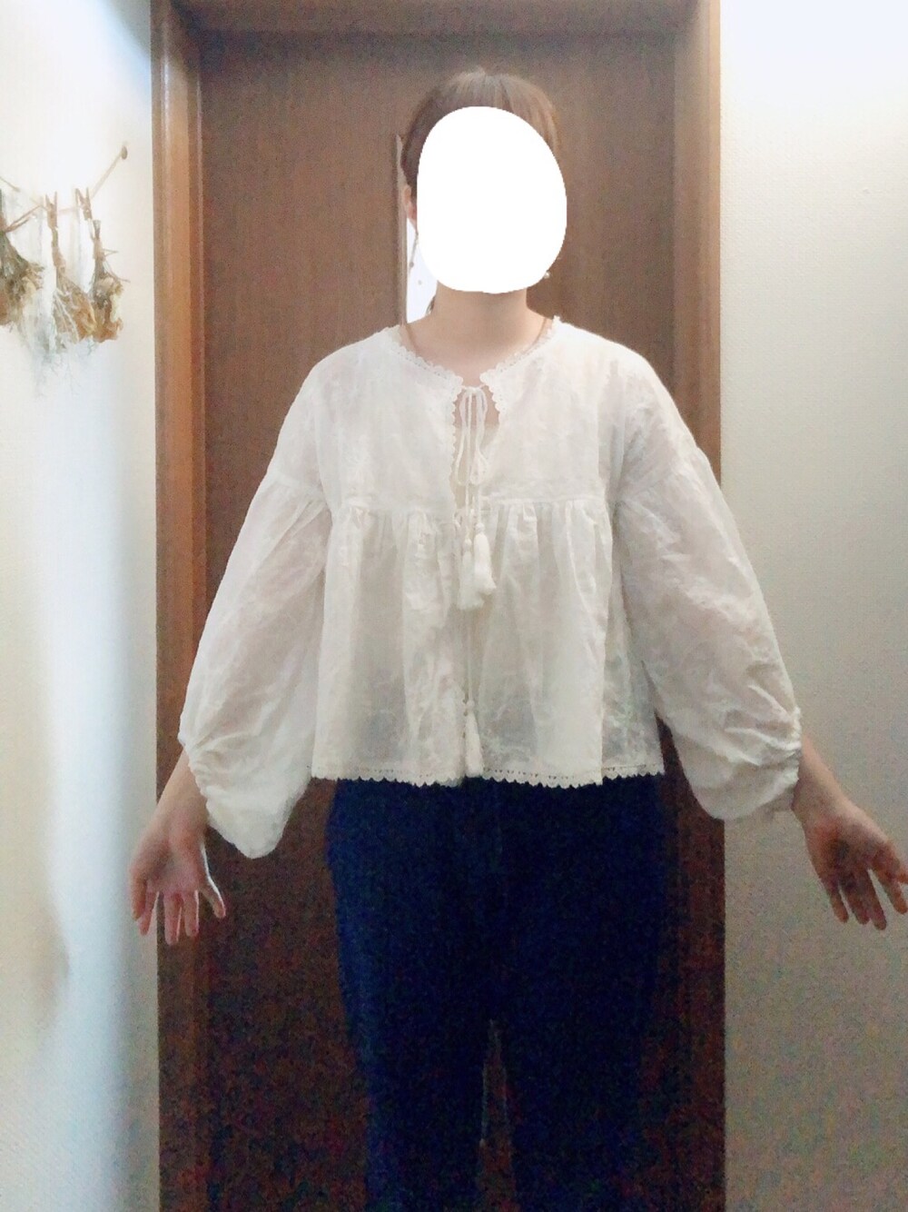 たそのシャツ/ブラウス「花刺繍ショートガウン」を使ったコーディネート