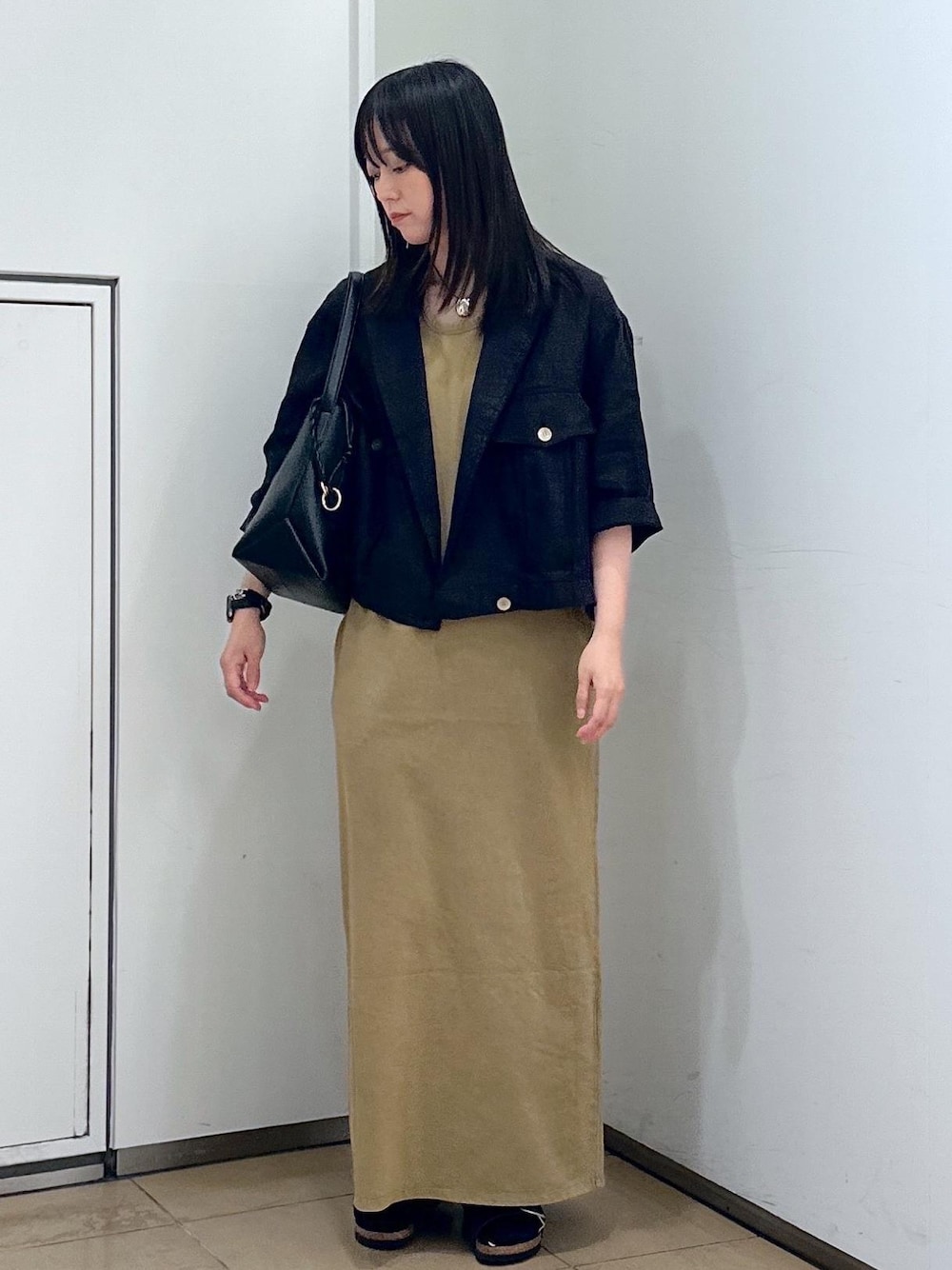 軽くさっと羽織れるブルゾン。 ノースリーブのワンピースと合わせたコーディネート。 ワンピースはリラックス感があり着ていてめちゃめちゃ楽!!