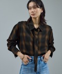 チェックシャツをビスチェ風にレイヤード。 グレーのパンツで全体を落ち着かせて足元はブーツを履いてます。