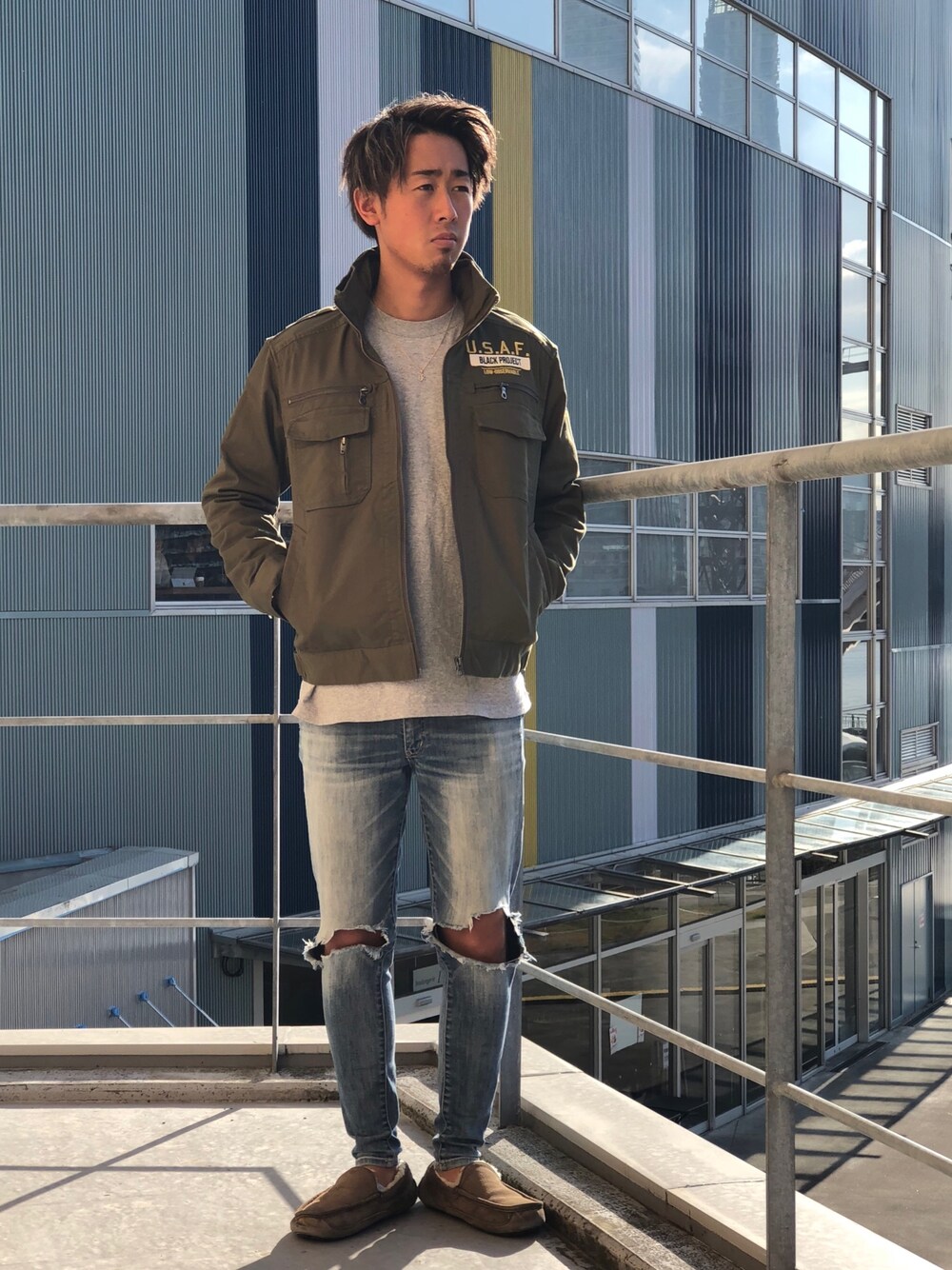 REIのミリタリージャケット「ストレッチ シンプル ミリタリージャケット/STRETCH SIMPLE MILITARY JACKET」を使ったコーディネート