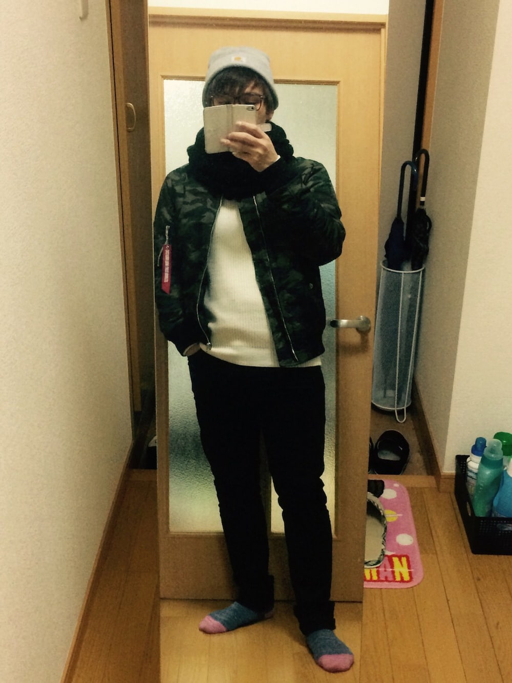 けいすけのミリタリージャケット「WEGO/パデッドMA-1」を使ったコーディネート