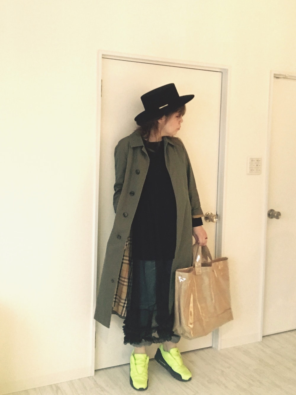 KOMOMOのステンカラーコートを使ったコーディネート
