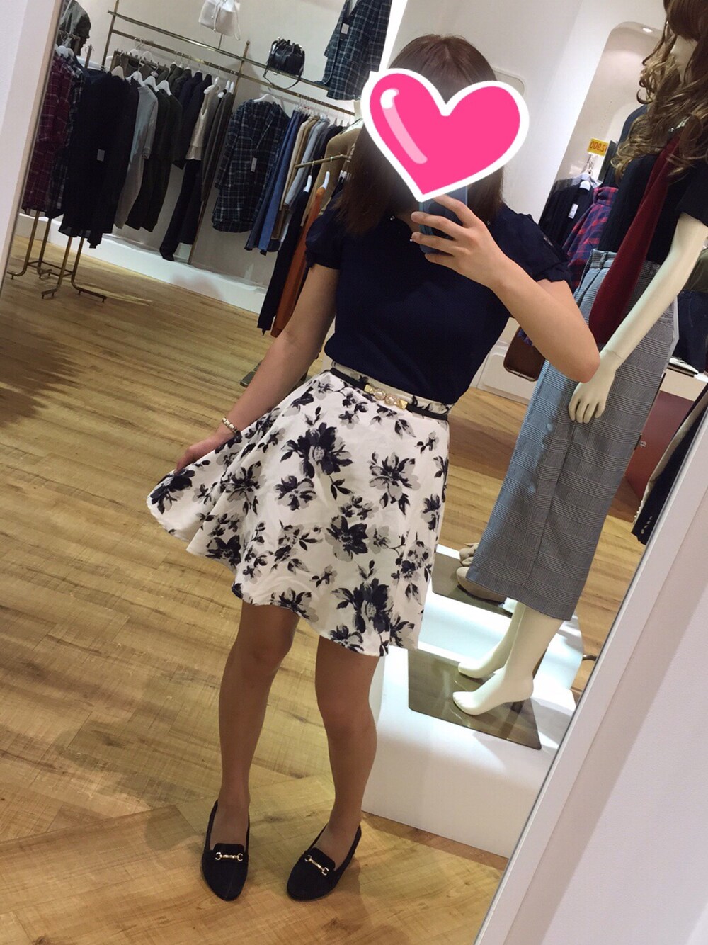 朝の出勤 今はやりの花柄に ウエストにベルト 私物