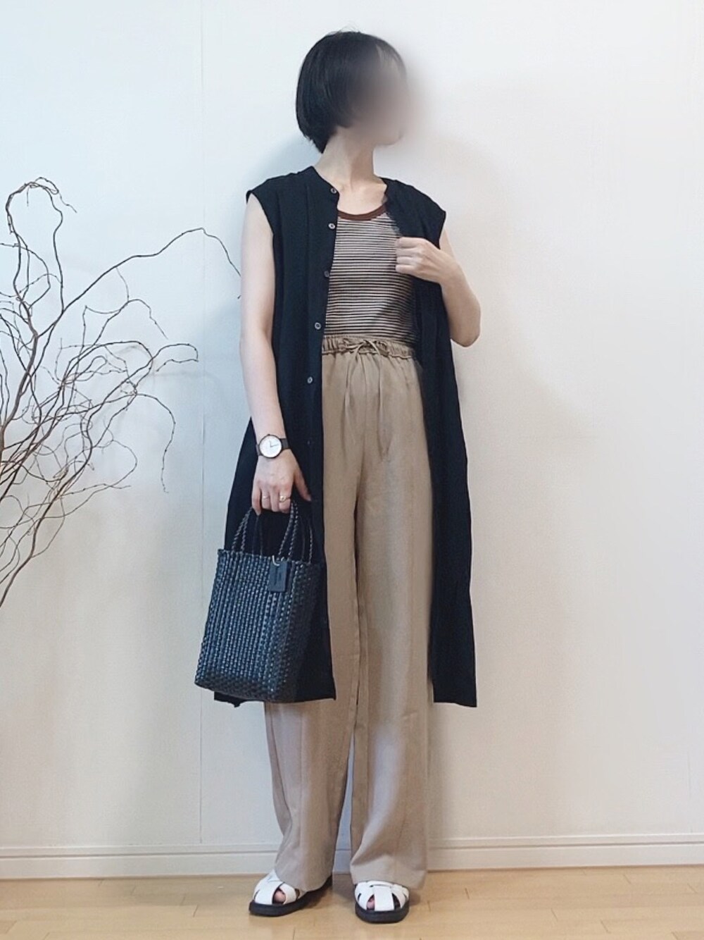 ご覧いただきありがとうございます🙇♀️ #大人カジュアル long shirt ▶︎FORK&SPOON tank top ▶︎しまむら pants ▶︎GU sandal ▶︎noyau bag ▶︎BEAUTY&YOUTH UNITED ARROWS watch ▶︎nordgreen お盆中は旦那さんと一緒にいてコーデ撮れないので 撮りだめコーデ投稿してます🙋♀️