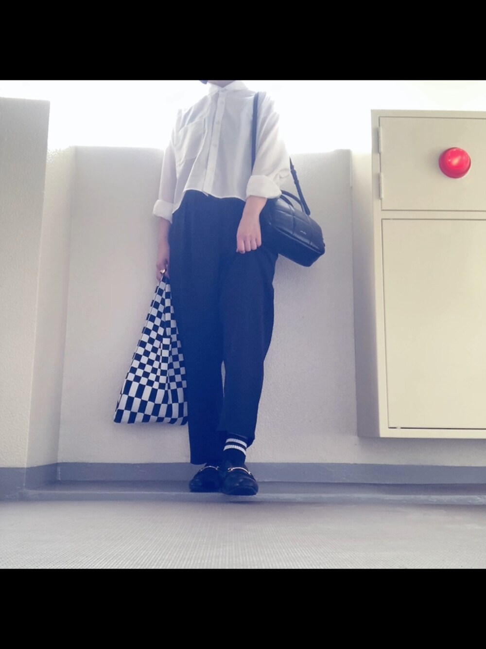 ご覧いただきありがとうございます♡ #ootd #モノトーン サラリーマン風 を丈感と小物で外し。 ずっと気になってたガチャガチャやったら 1番欲しいのが出た🥹 おやつマックでお腹いっぱい💨カエロカエロ