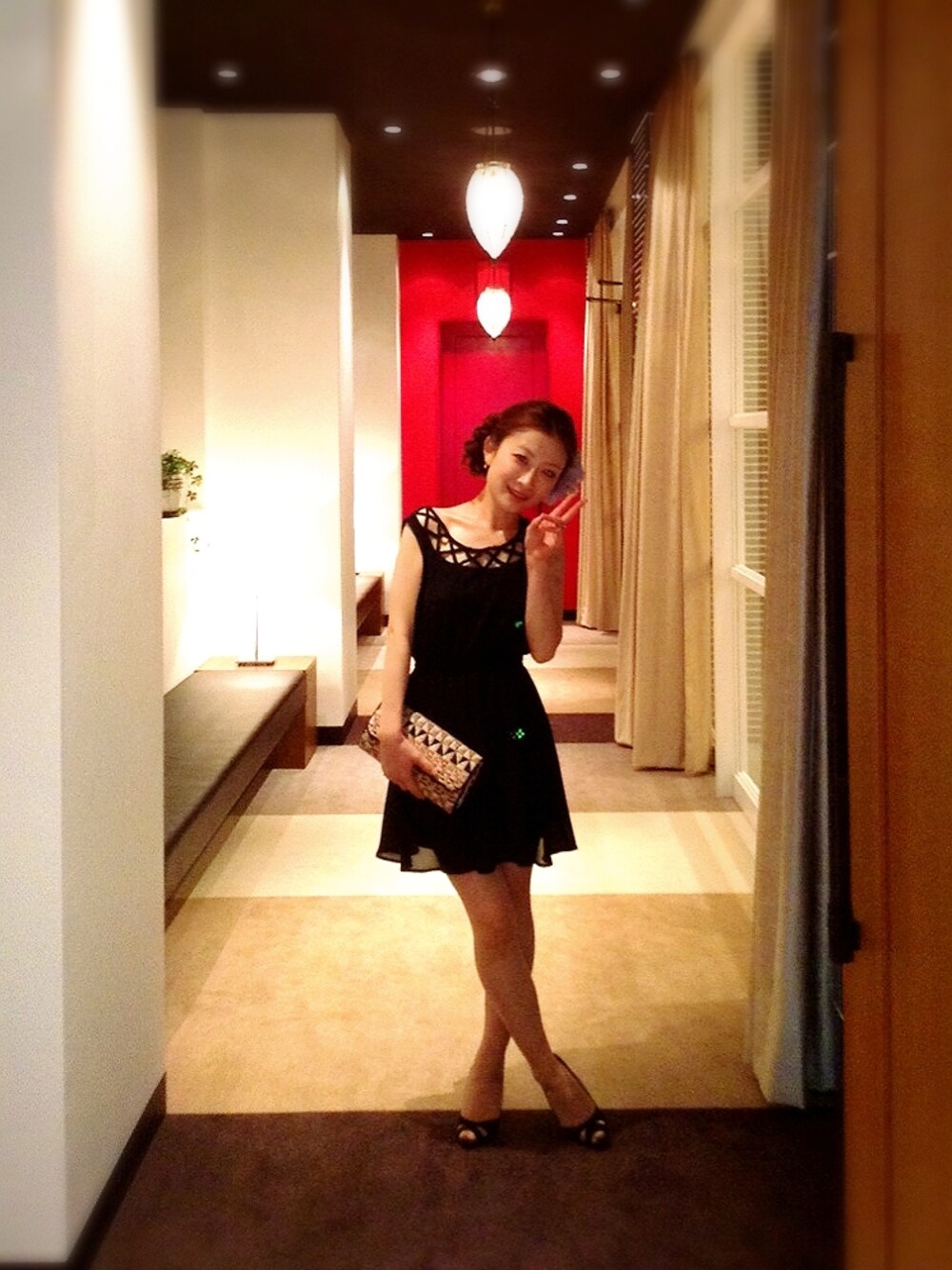 ドレス不明 パンプス不明 ネックレスはアガットの一粒ダイヤ。 リングも薬指、ピンキー共にアガットです。 式場前の廊下が素晴らしかったですよ。