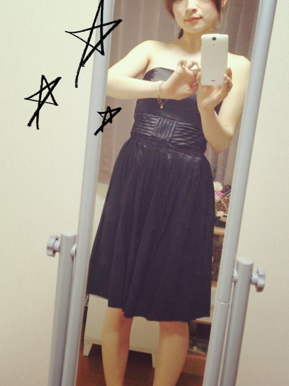 実際はゴールドのクラッチ、高島屋で買ったパールのネックレスをつけて。 イランイランのドレスは、本当に体のラインをきれいに見せてくれます。 背が低いのでディテールは大事にしています。