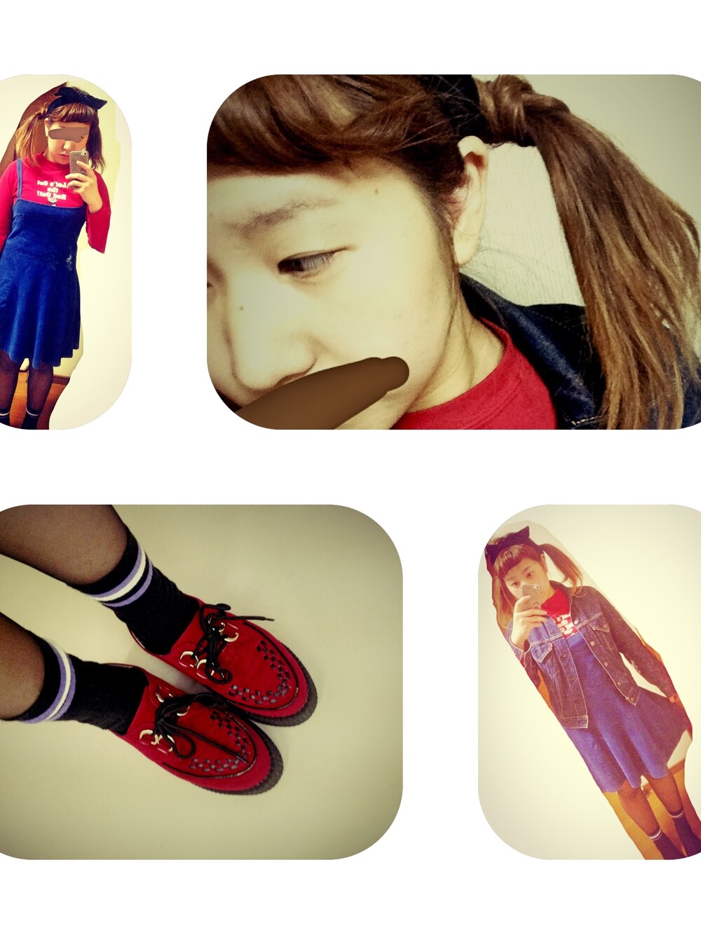 久しぶりに色のある組み合わせ 。 【 デニム + 赤 】で統一感を。 Gジャンは母のおさがりさん。