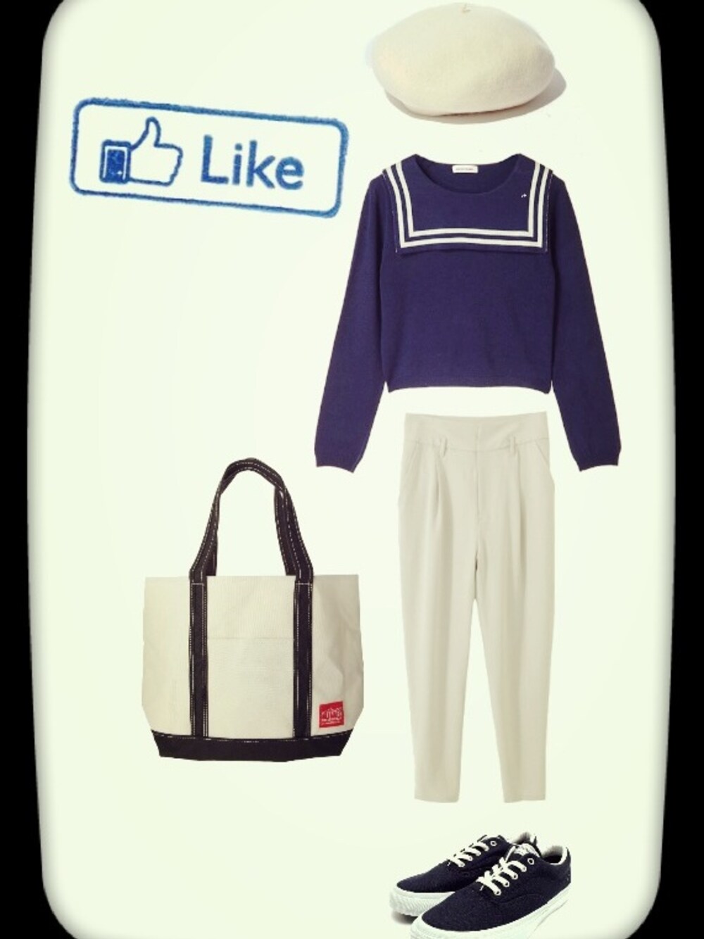 【 ホワイトパンツ ♯ 】 merryjennyのニットのデザインに 心奪われました ( ⸝⸝⸝°_°⸝⸝⸝ ) ホワイトパンツを合わせて マリン風に ♩〜♩ - - - - - - - - - - - - ニット:merryjenny パンツ:KBF ベレー帽:SHIPS スニーカー:atmos トートバッグ:manhattan portage