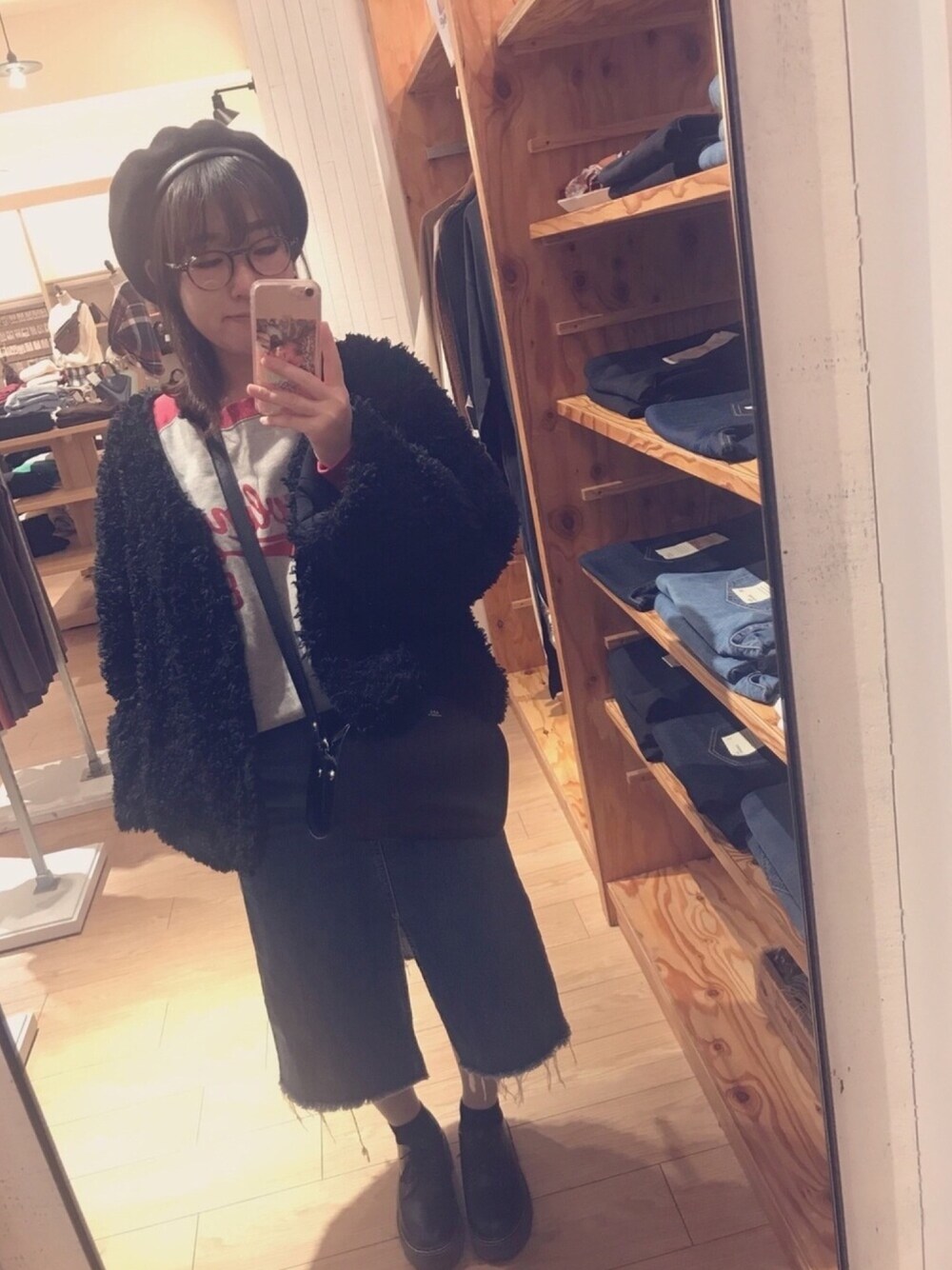 スウェット★rowrings(used) カジュアルコーデ💌 chicoのアウター、いちばんあったかい^^ アウターと小物類は黒で揃えました♡
