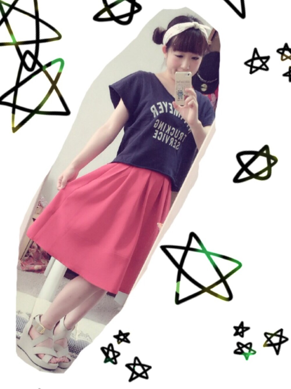 8月4日♡ めずらしく、ぱきっぱきっな色合わせのコーデです( ^_^ )♡ バンダナとサンダルが白でトリコロール♫♩ くまお団子にしてみたけど、これはOUTでしたね(´-ω-`) もうやらなそう(笑)