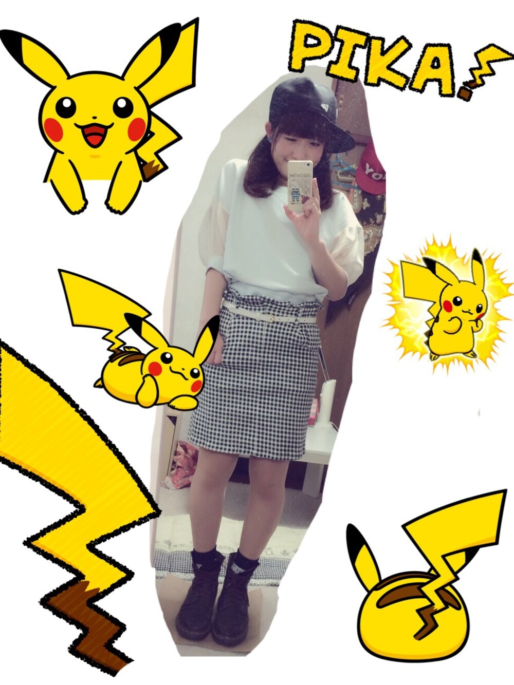 スカートのウエスト部分がなみなみでかわいいのと、インした方がバランスよかったので、ウエストイン(´,,•ω•,,`)♡ 最近何かとウエストインがすきです☆☆ ピカチュウがかわいくてスタンプ乱用してしまった、、、