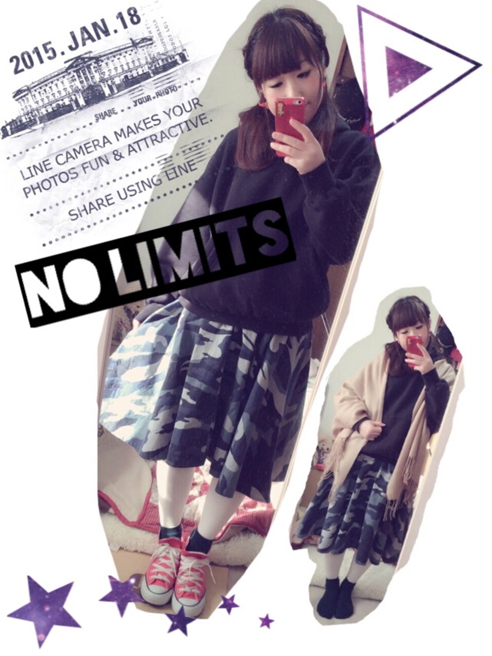 パーカー★used(champion) ストール★エバンジル カモフラが辛口なので、いつもだったら他を全部ガーリーにするんですが、今日は気分で黒のパーカーと合わせてみました✩°。⋆⸜(ू。•ω•。) このchampionパーカーは、オーバーサイズな感じがお気に入り( ^_^ )♡ たまにはこんなボーイズミックスコーデもしたくなるー! ヘアアレと白タイツで甘め要素も忘れずに♡♡ ピアスとコンバースを赤でそろえて、差し色にしました(´,,•ω•,,`)♡
