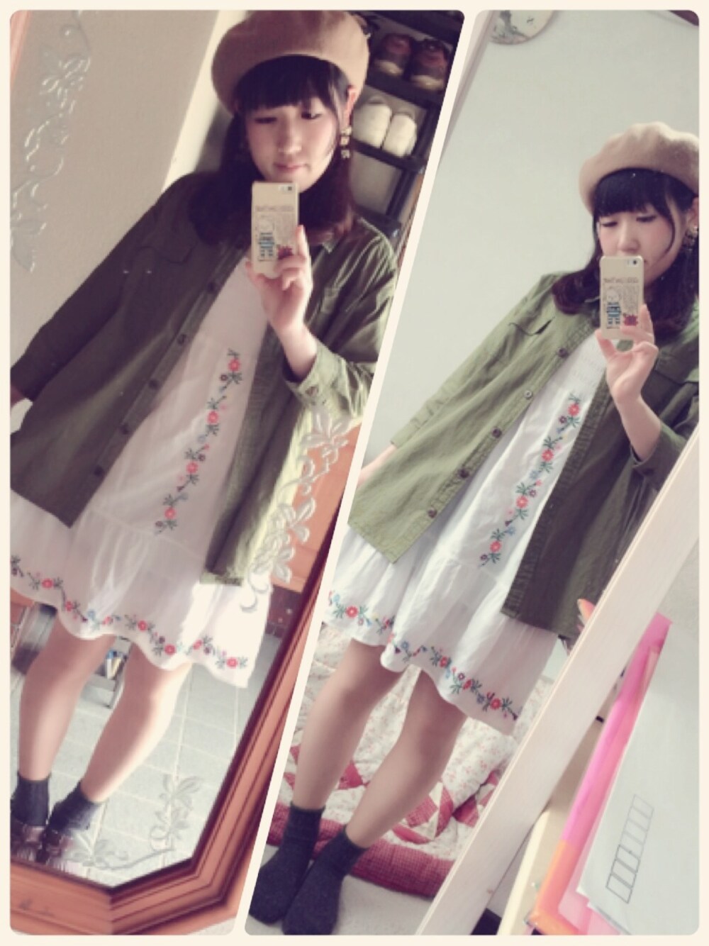 5月12日♡ だいすきな色合わせのコーデ♡♡ ベレー帽★雑貨店 シャツ★オンザカウチ ワンピ★LOWRYSFARM サボ★LOWRYSFARM