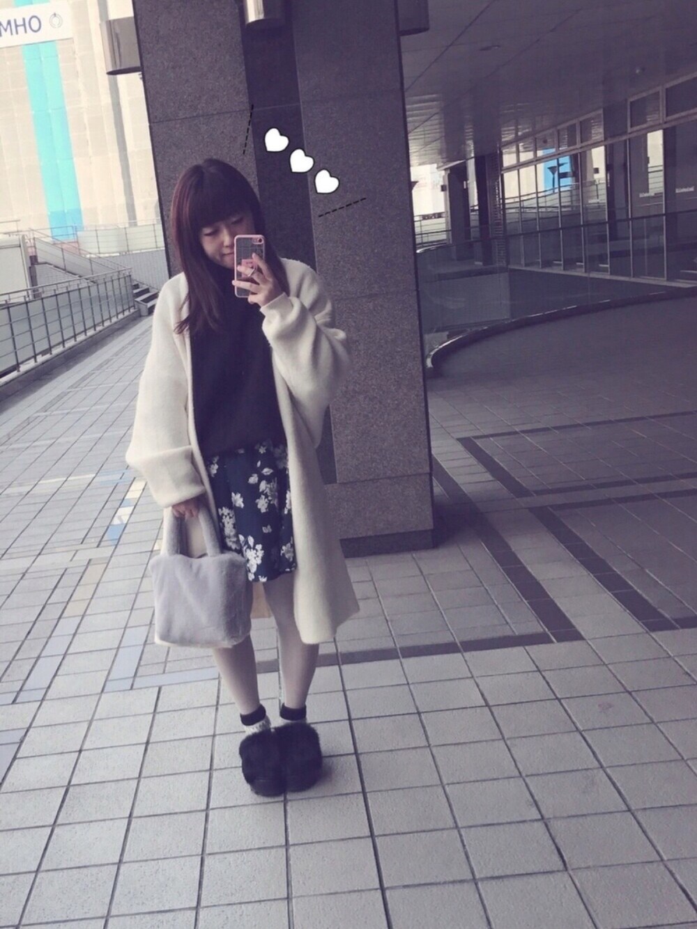 ガウン★JEANASIS ファーサンダル★no brand バック★ダイソー JEANASISのガウンは今年購入したニューアイテム✨😎 袖のぽってり感がとってもお気に入りです♡ バッグはダイソーで300円( ¯•ω•¯ ) 全然ひゃっきんには見えないので、嬉しくてついこれダイソーで買ったんだって自慢しちゃいます(笑) まだ風が吹くと寒いので冬っぽいコーデですが、全体的に色は明るくまとめてみました♡