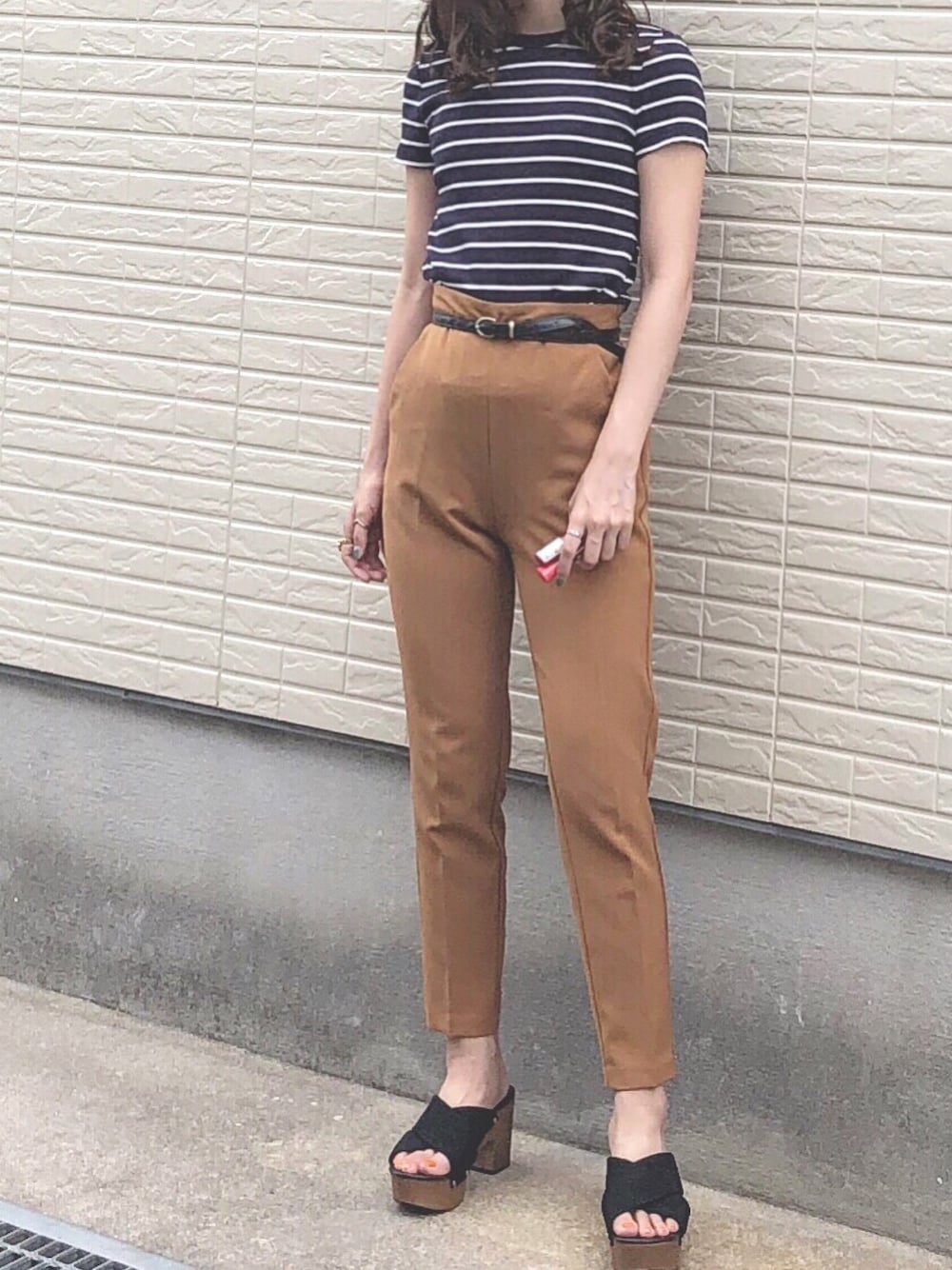 シンプルコーデが落ち着く 🍒 GUのテーパードパンツが 足首にかけて細くなるデザインなので 着痩せ効果抜群で、すごくお気に入りです💞✨ 少しずつ涼しくなってきていますね☘️