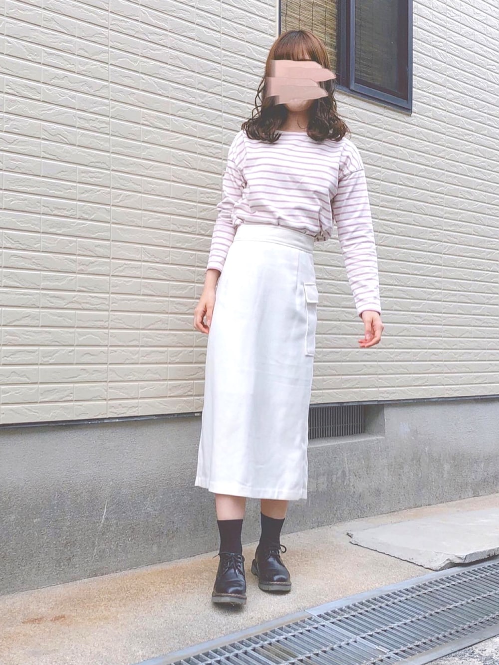 𓂃 𓈒𓏸 先ほどのコーデのアウターなしバージョン🍒🍒 カジュアルなコーデが定番のボーダートップスも、 色味やスカートなどを女の子らしいものにするとガーリーに着こなせます☺☺