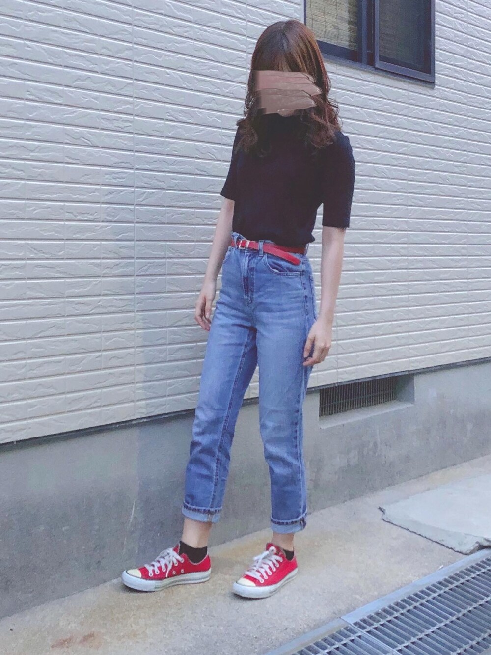 𓂃 𓈒𓏸 ご覧くださり、ありがとうございます🌷 五分袖解禁です🍊🍊♡ 黒のリブトップス×薄めカラーのデニムの 組み合わせがお気に入りです!😊 今日は夏並みにすごく暑いですね 〜🍧🍧