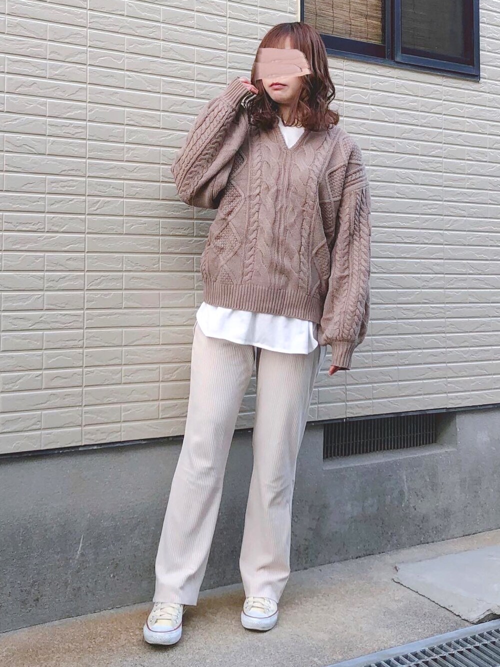 𓂃 𓈒𓏸 ご覧くださり、ありがとうございます🍒 キーネックセーターコーデです👗🌼 白Tシャツをレイヤードしてトレンド感をプラス☺☺ ボトムスはアイボリーのリブパンツ、 足元はコンバースで、 カジュアルながらも淡色でふんわりとした雰囲気にしてみました🐻💘