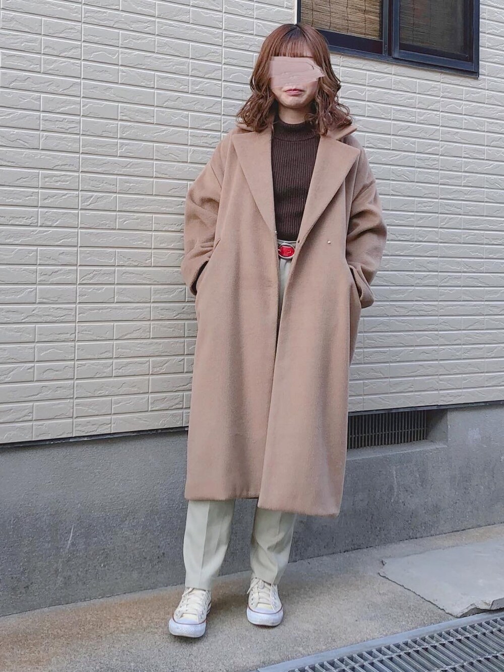 𓂃 𓈒𓏸 ご覧くださり、ありがとうございます🍒 ロングコートにカラーパンツを合わせて、きれいめカジュアルなコーデにしてみました🐻💗 足元はスニーカーでカジュアル感をプラス🍫