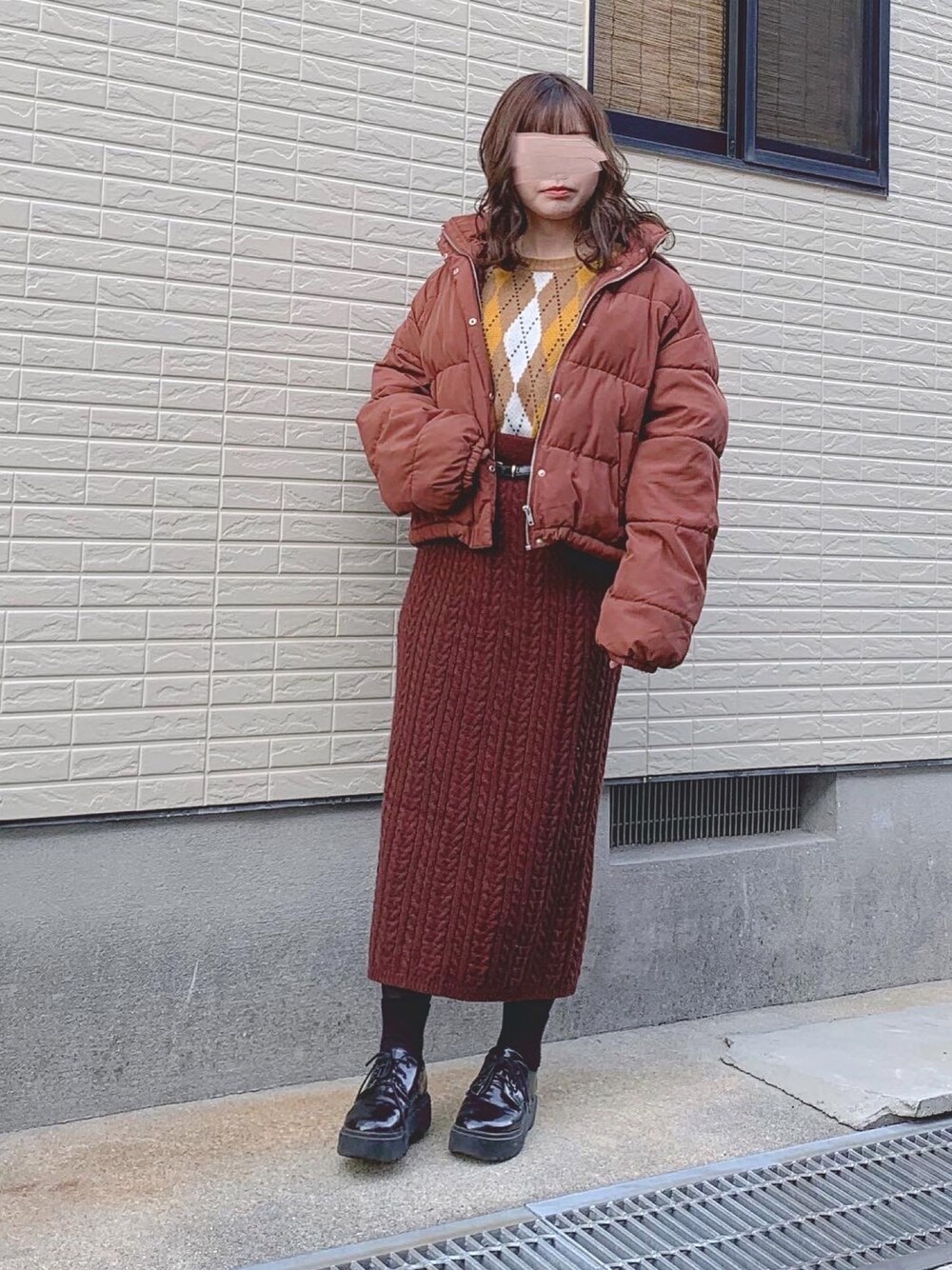 𓂃 𓈒𓏸 ご覧くださり、ありがとうございます🌷 アーガイルニットコーデです☃🤍 ブラウンコーデにはまっています 〜☺💞 同色系で合わせてワントーンコーデにしました🧸🍒🍒