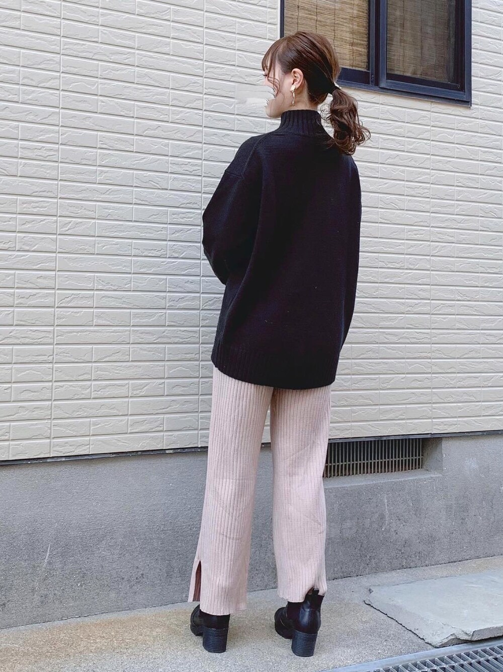 𓂃 𓈒𓏸 先ほど投稿したコーデのアウターなしバージョンです🥐 ニットのシルエットが可愛いです🍒🍒🤍 お尻をカバーできるので細見えします☺ タートルネックなので、ローポニーにしてスッキリと👱🏻♀️♡