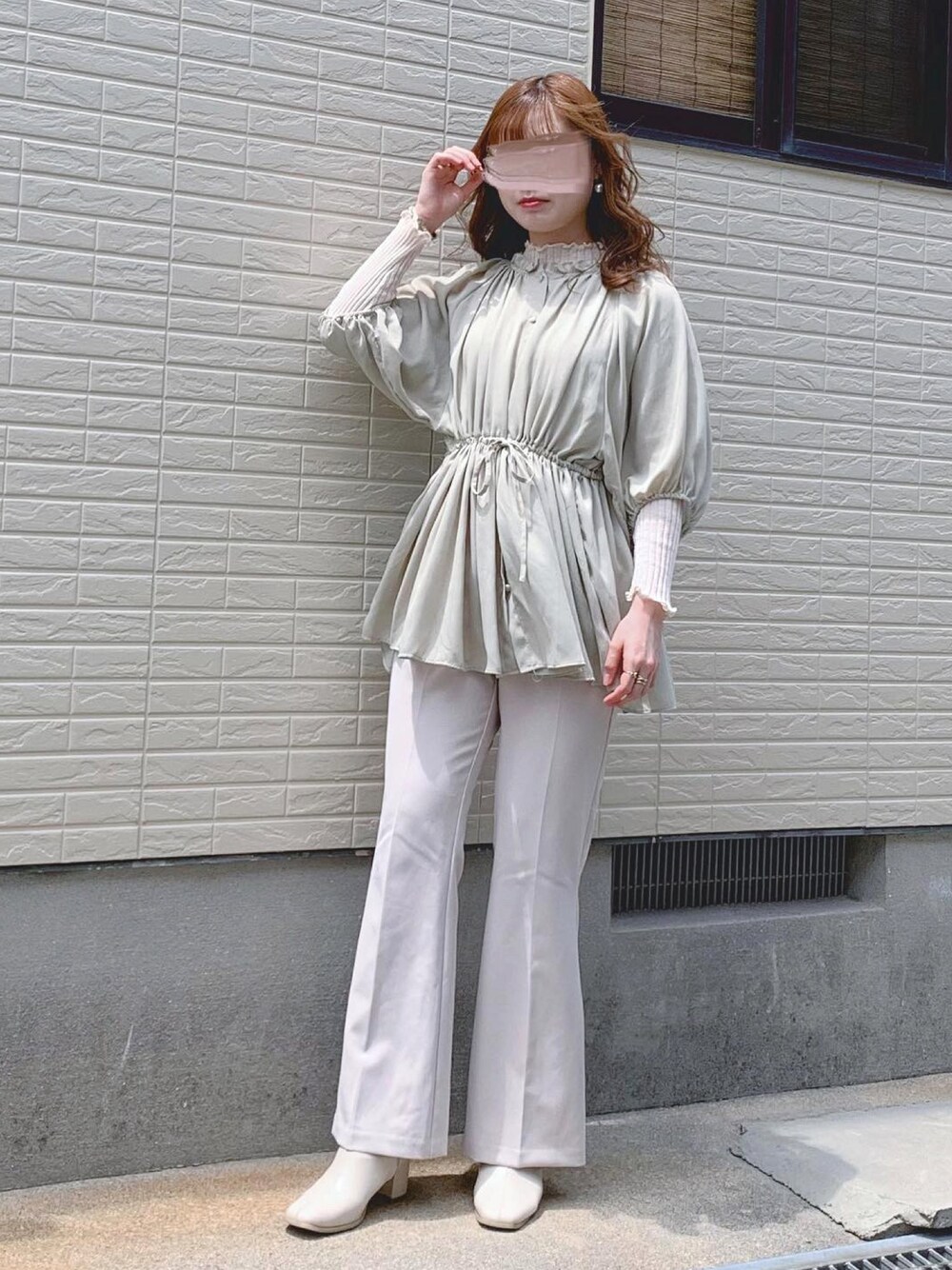 𓂃 𓈒𓏸 ご覧くださり、ありがとうございます🌷 シアーブラウスコーデです🎀🤍 ミントグリーン×グレージュの組み合わせで春の淡色カラーにしてみました😚🤍 シアートップスをレイヤードすることで一気にトレンド感が出ます🍒🍒