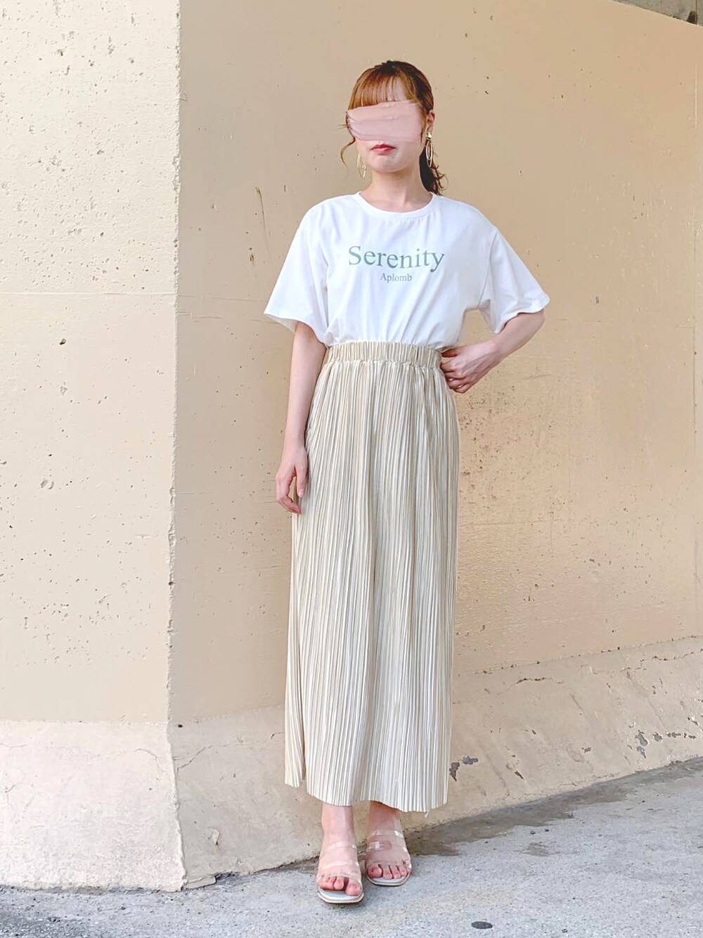 𓂃 𓈒𓏸 ご覧くださり、ありがとうございます🕊 𓈒 𓏸 プリントTシャツコーデです🌿 スカートの色味をアイボリーに変えて淡色ワントーンスタイルにしてみました🐩🎀 組み合わせ自由で着回し力抜群です😚🍒