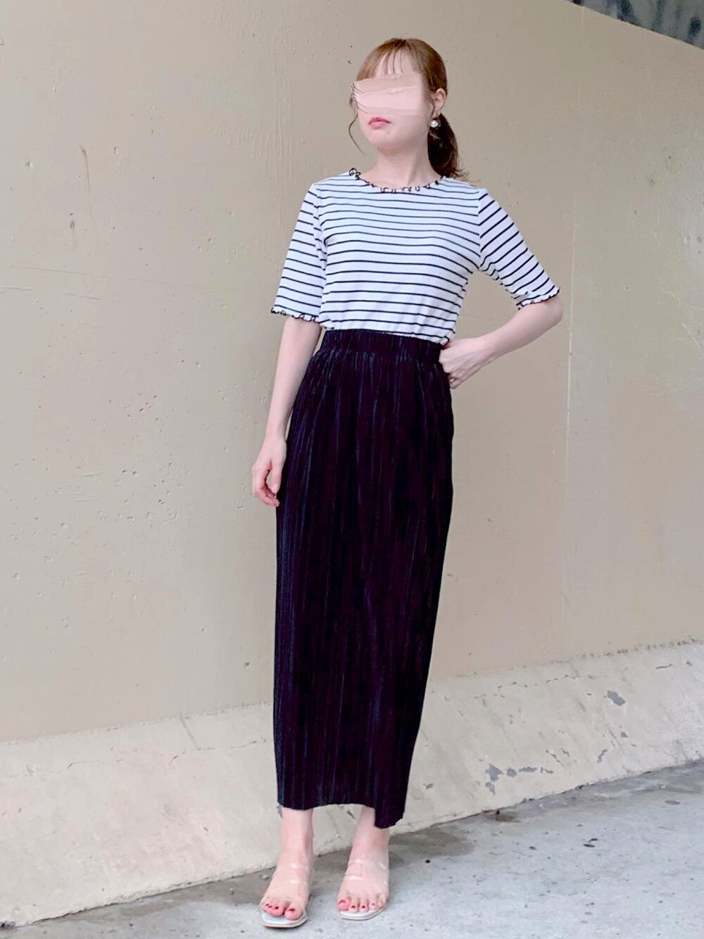 𓂃 𓈒𓏸 ご覧くださり、ありがとうございます🌷 ボーダートップスコーデです🦓🌿 ブラックのプリーツタイトスカートを着回して モノトーンな大人ガーリースタイルにしてみました🍒🍒